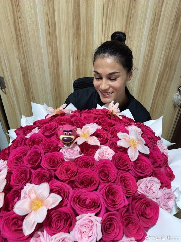 1月7日讯 今天是广东女篮球员迪拉娜的29岁生日,她更新社媒晒出一组庆祝照。