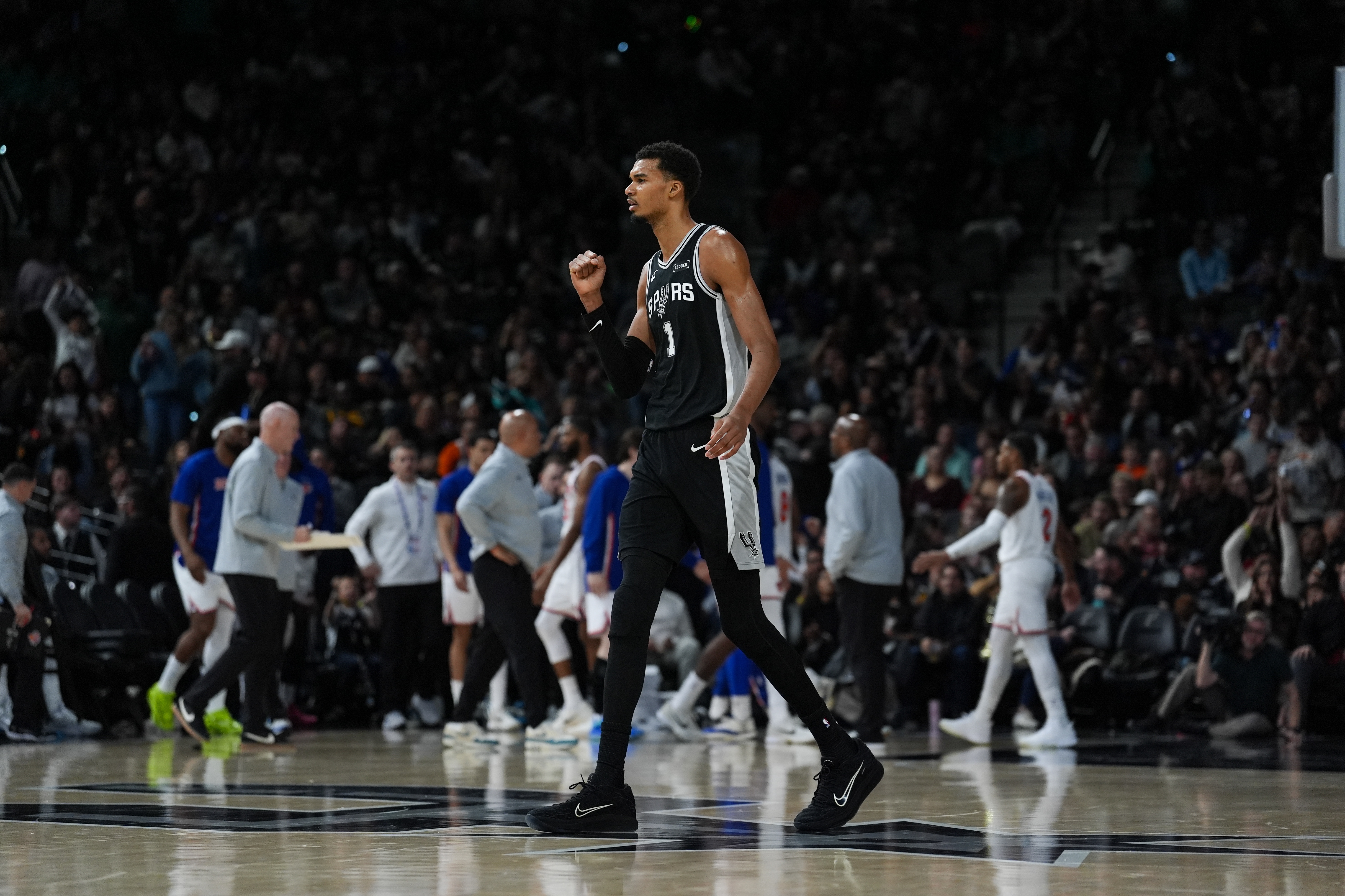 马刺主教练米奇·约翰逊谈文班亚马出场时间增加的问题:“还是那句话,我们得看看他的身体反应和恢复情况。我们还要客场旅行,希望能继续一点点把时间往上加。但我们必须对他的出场时间保持谨慎,他短期内不可能打40分钟。”